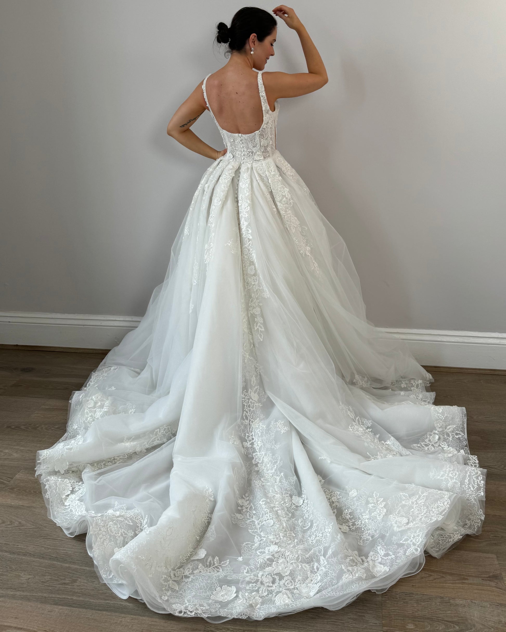 Sample gowns consist of new and pre-existing floor samples, most of which have been tried on but never worn to a wedding. These gowns may require repairs, alterations, and/or dry cleaning, which are not included in the price. Due to their nature, sample gown measurements may vary slightly from the original size grading due to stretching from try-ons. By making a purchase, you acknowledge and accept the condition of the sample gown as described and agree that all sales are final.