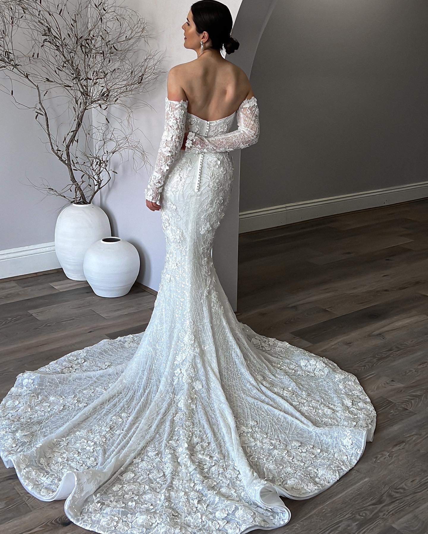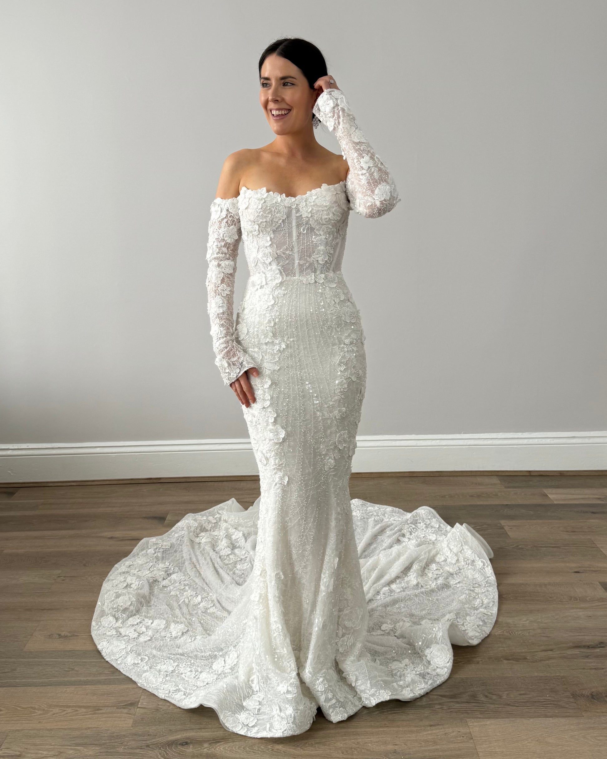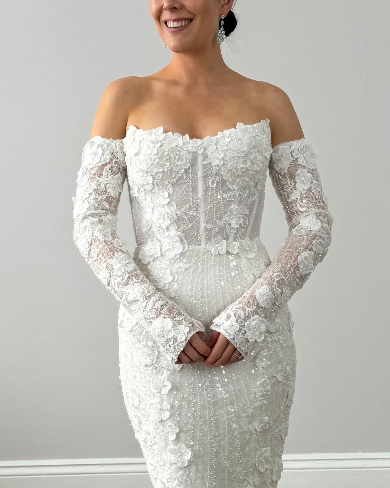 Sample gowns consist of new and pre-existing floor samples, most of which have been tried on but never worn to a wedding. These gowns may require repairs, alterations, and/or dry cleaning, which are not included in the price. Due to their nature, sample gown measurements may vary slightly from the original size grading due to stretching from try-ons. By making a purchase, you acknowledge and accept the condition of the sample gown as described and agree that all sales are final.