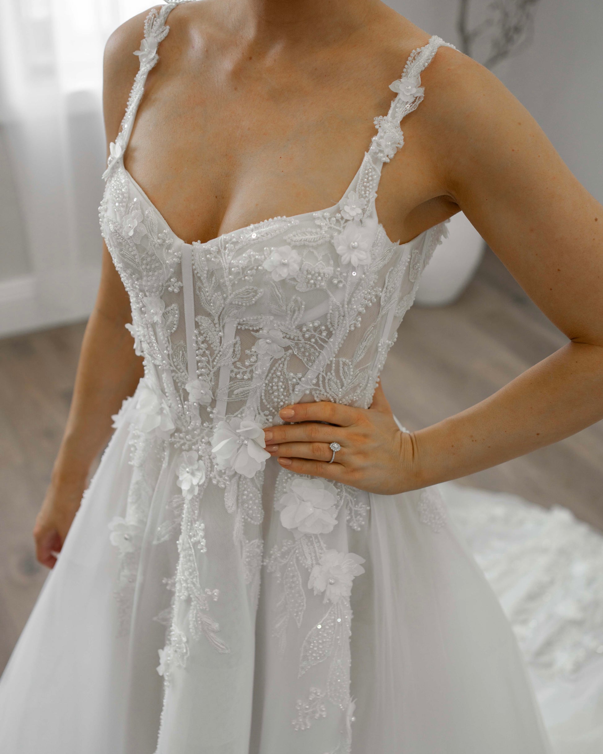 - 3D florals with tulle